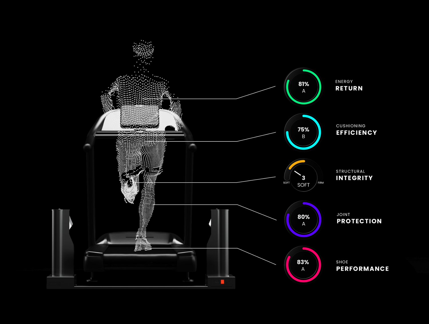 An evidence based scoring system using 3D motion capturing cameras that detail how well different footwear is working for you. Suitable for all abilities.
